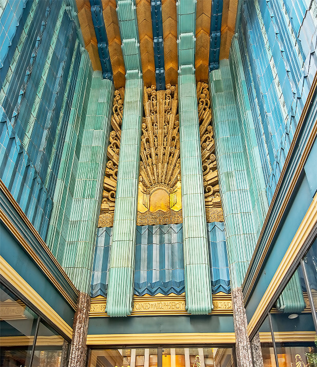 Le site a répertorié des parallèles entre le tissu imprimé et l’architecture en Art déco.